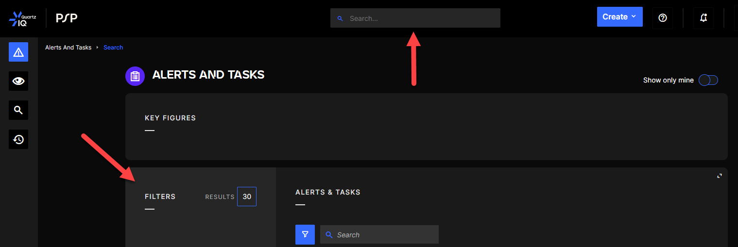 QuartzIQ gives you access to some basic navigation features. You can navigate between different objects by using the filters on the left or the spotlight search at the top.