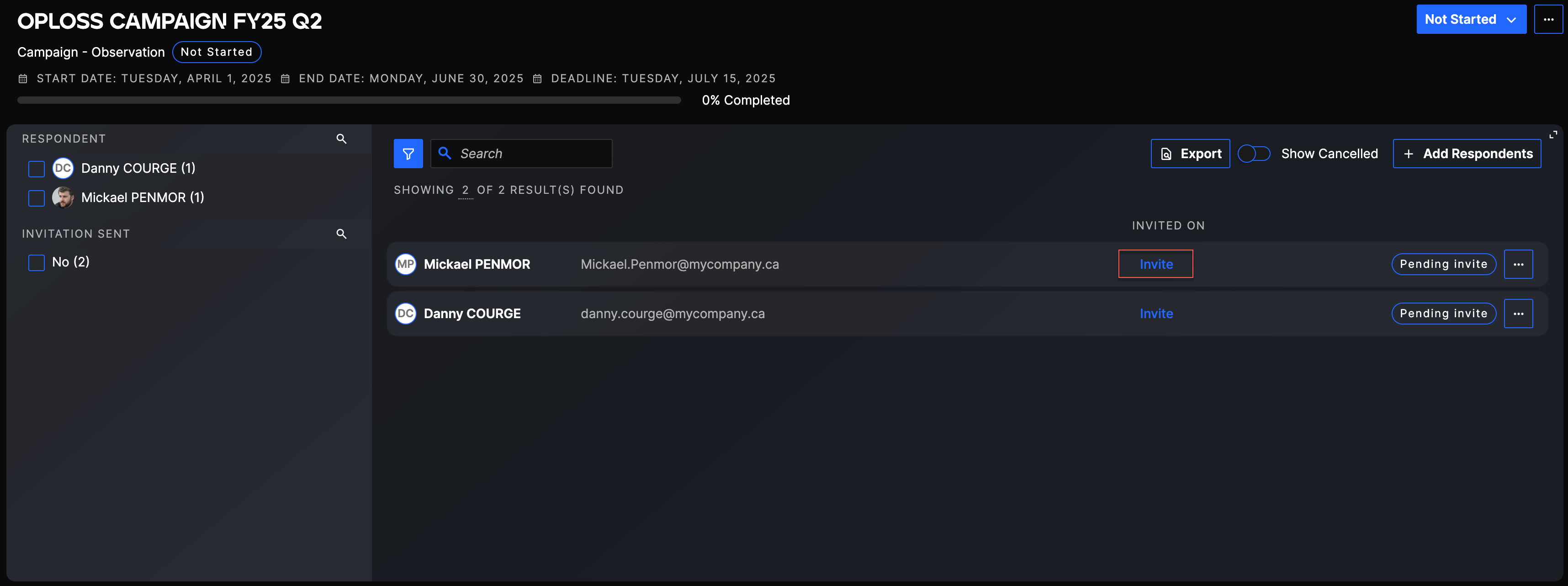 As the manager of the campaign you can then decide when you want to invite the employees to answer the questionnaire. Click on the invite button to do so :