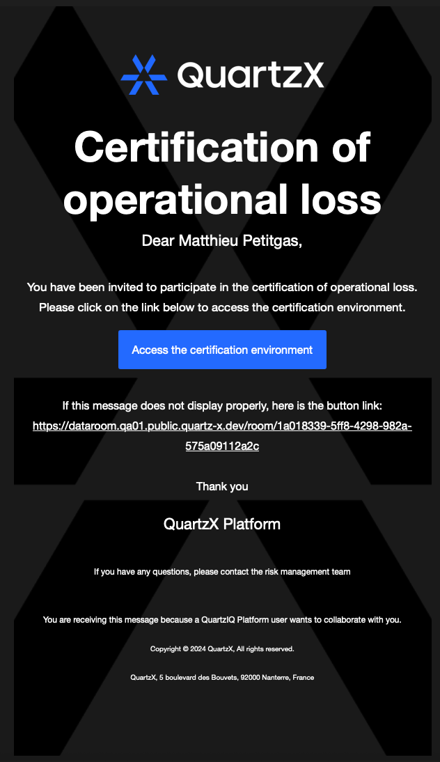 Once the campaign is created, the application will automatically identify the person who certified the operational loss, declared with a date between the start date and the end date of the campaign: