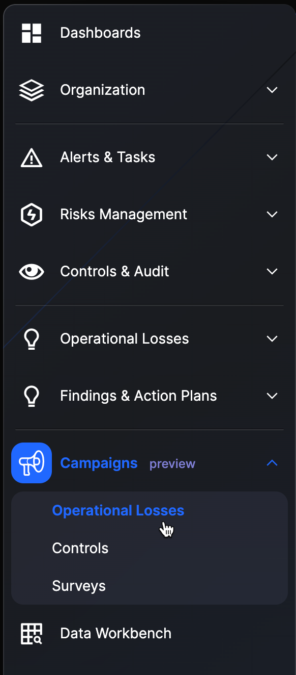 To do so, in the side bar menu, Within the Campaign section, select Operational Losses :