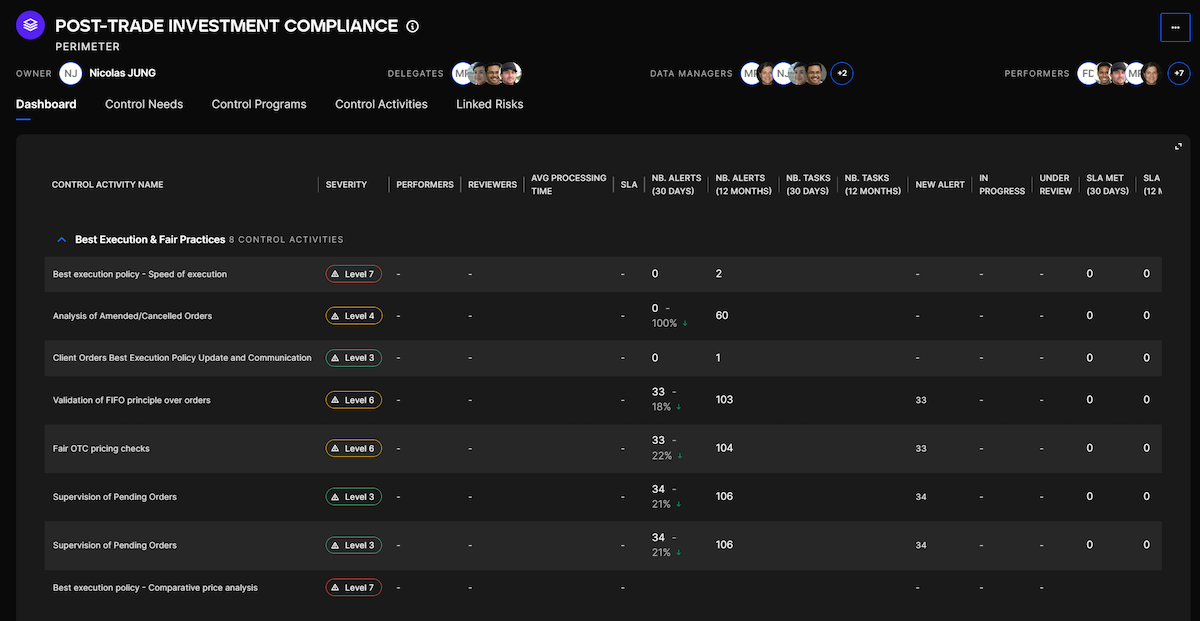 - Performers: Performers are able to see the Control Needs and Control Activities of their Perimeter(s) and are the only persons who can take actions on their Alerts and Tasks.