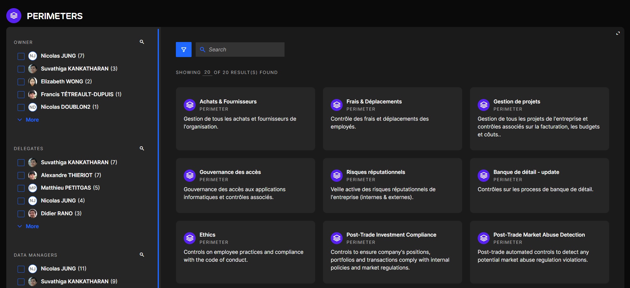 To view Perimeters, click on Controls & Risks / Perimeters.