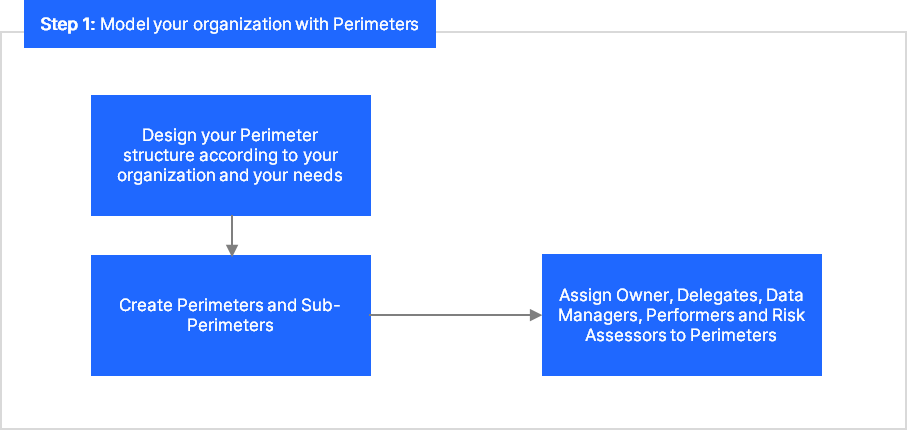 Step 1 - Model your organization: You can find more information in the Perimeters article.