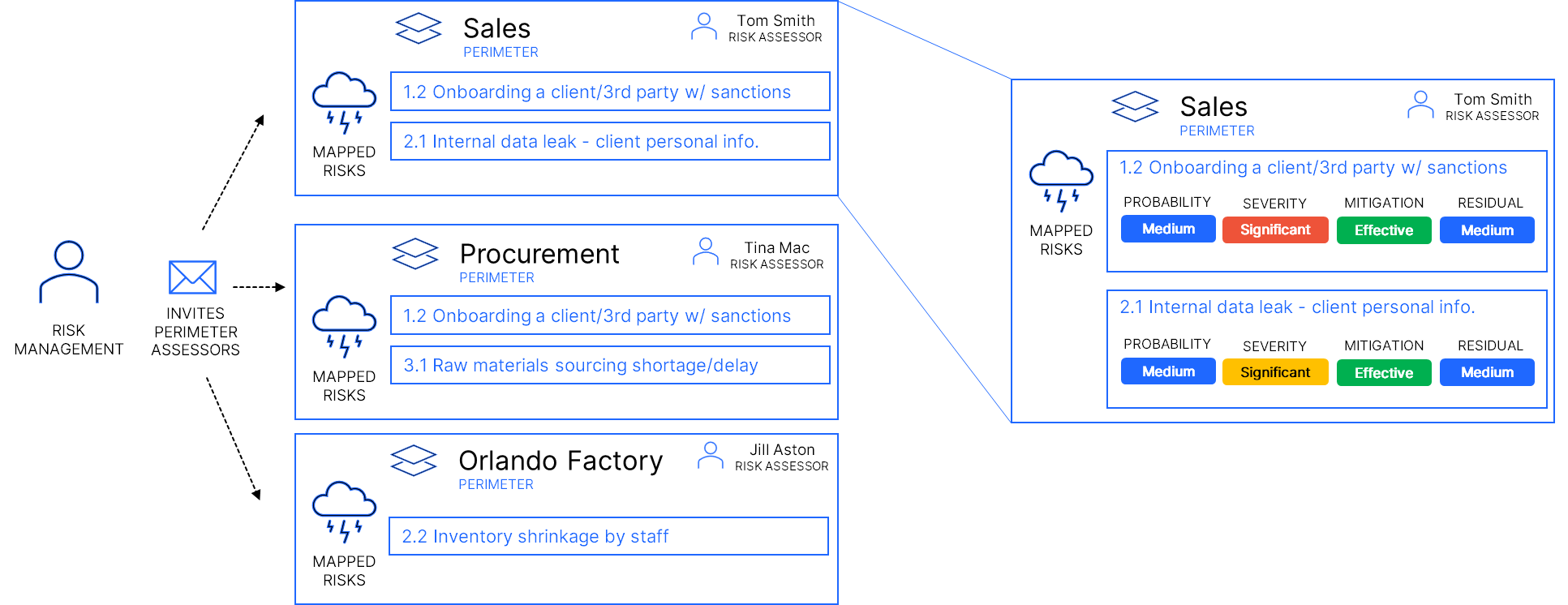 Assessments are first performed at the perimeter level by the risk assessors appointed & invited by Risk Management.