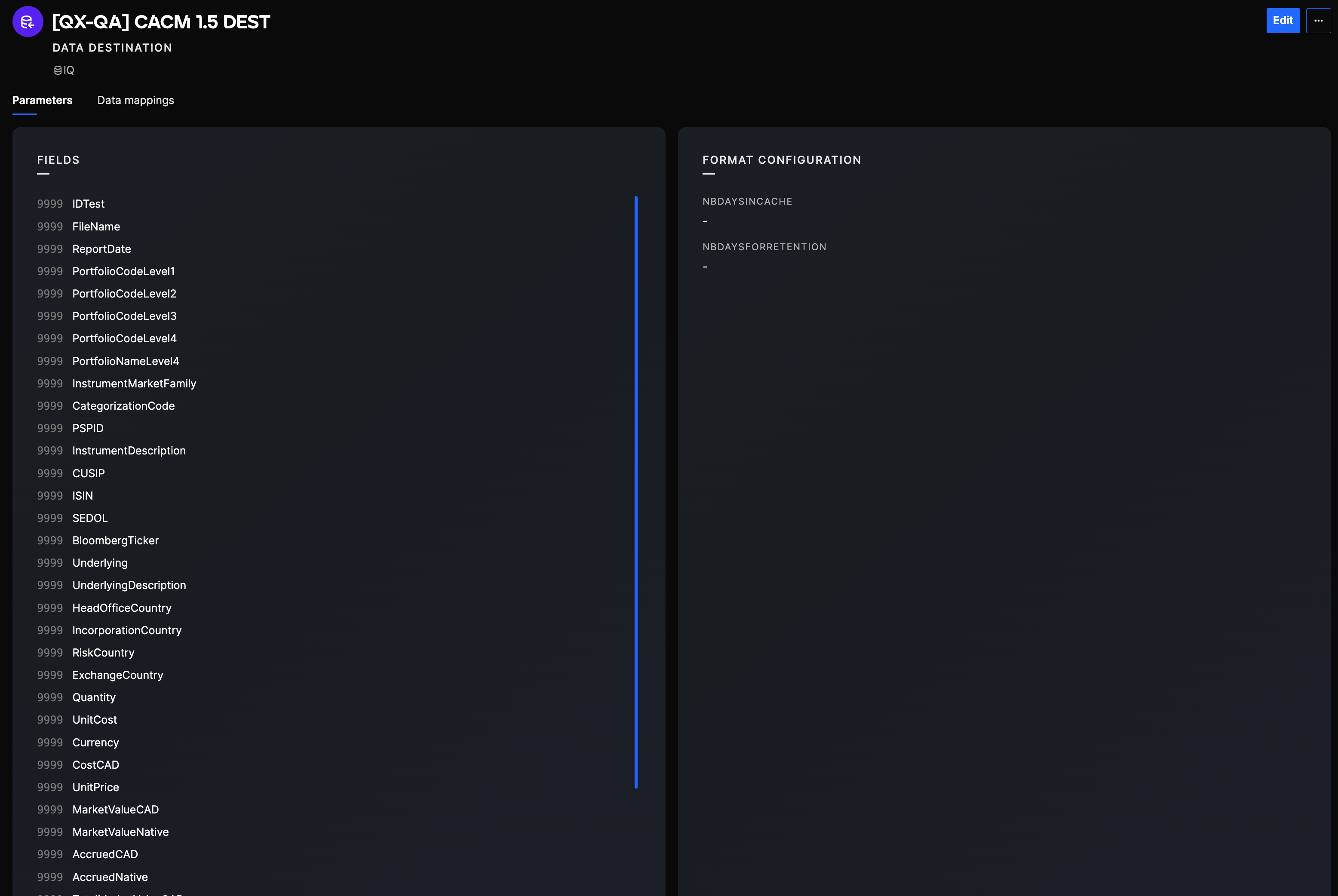 You can click then on any Data Destination to see its' configuration details and its' fields. You can also view with which Data Destinations it is mapped with using the "Connection mappings" tab.